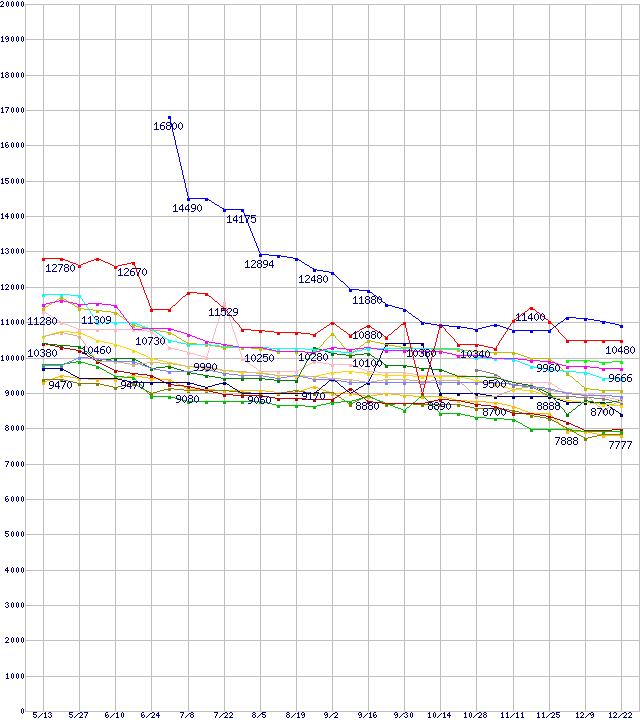 | [↓次グラフ]: | HDD 200~250GB未満の最安値推移 |