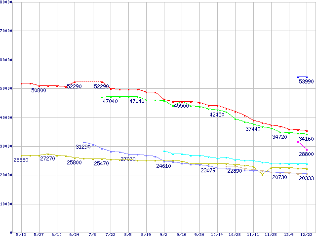 | [↑前グラフ]: | HDD 250~300GB未満の最安値推移 |