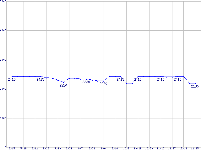 | [↓次グラフ]: | メモリ主要製品(最安値5千円未満)の最安値推移 |