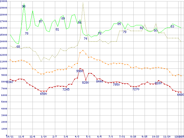 | ※このグラフは過去のデータも税率5%相当に調整した税込み相当額のグラフです。 税率変更や、総額表示方式導入(2004年4月)の影響は除いています。 | |||||||||||||||