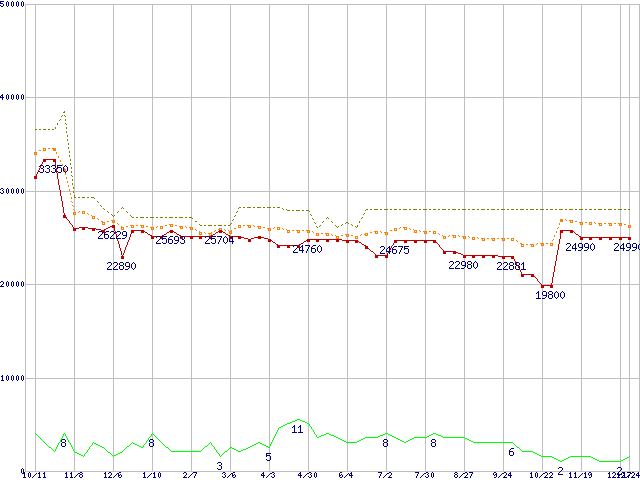 | Opteron 240(1.4GHz) リテールパッケージの価格推移 |