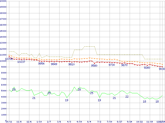 | ※このグラフは過去のデータも税率5%相当に調整した税込み相当額のグラフです。 税率変更や、総額表示方式導入(2004年4月)の影響は除いています。 | |||||||||||||||