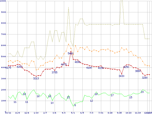 | PC3200 DDR SDRAM 256MB(CL2.5)の価格推移 |
