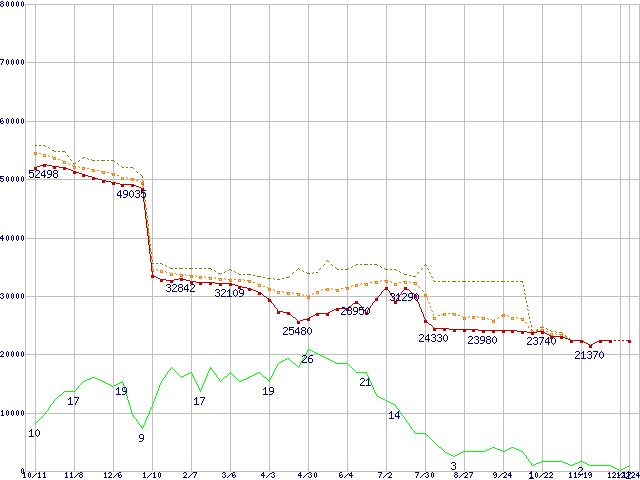 | Athlon 64 3200+(2GHz,L2 1MB) リテールパッケージの価格推移 |