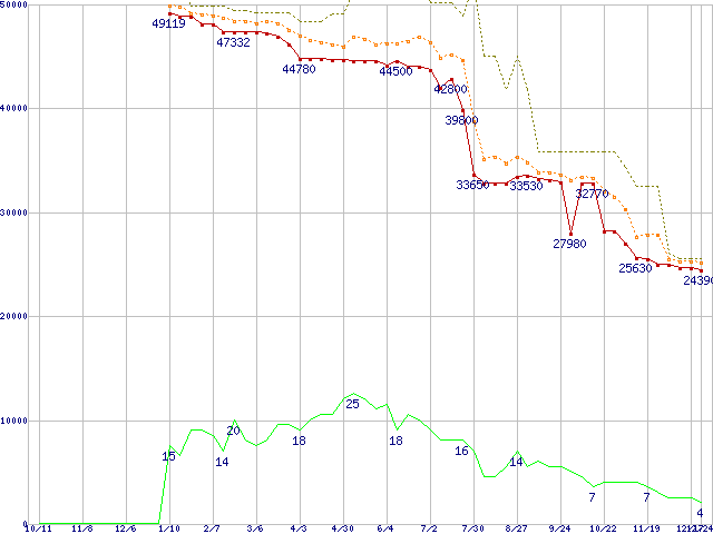 | Athlon 64 3400+(2.2GHz,L2 1MB) リテールパッケージの価格推移 |