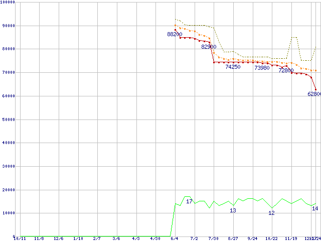 | Athlon 64 3800+(2.4GHz,L2 512KB) リテールパッケージの価格推移 |