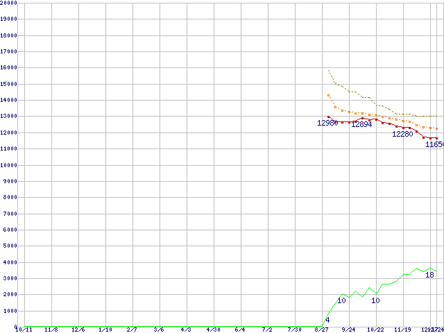 | Celeron M 350 (1.3GHz) リテールパッケージの価格推移 |