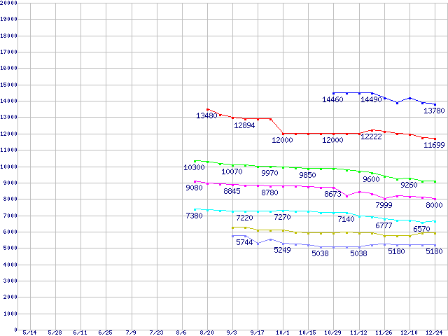 | [↑前グラフ]: | Socket 754 (PGA,FSB 800MHz,L2 256KB)の最安値推移 |