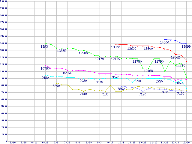 | [↑前グラフ]: | LGA 775 (FC-LGA42,533MHz,L2 256KB,Prescott,NX bit対応)の最安値推移 |