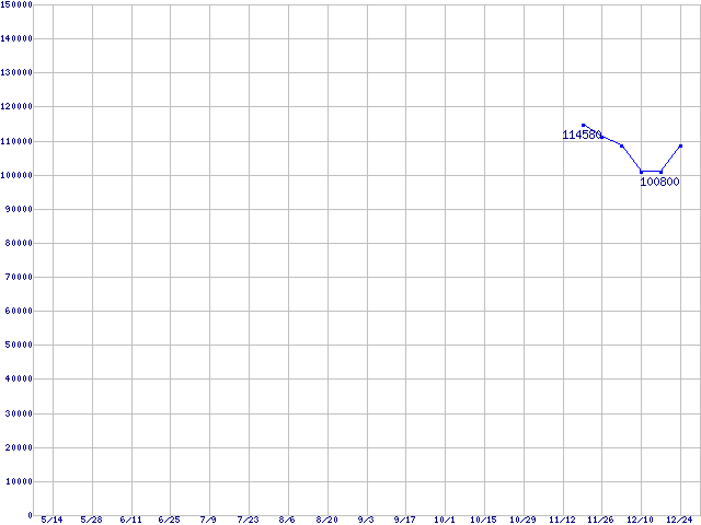 | LGA 775 (FC-LGA4,FSB 1066MHz,L2 512KB,L3 2MB,Hyper-Threading,Gallatin)の最安値推移 |