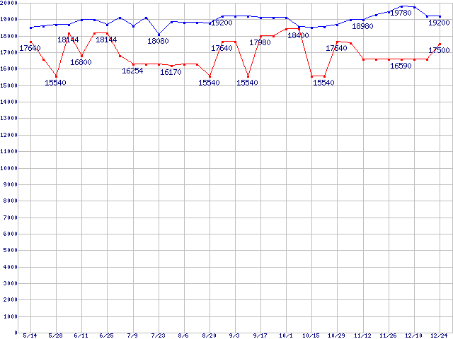 | [↑前グラフ]: | Socket 478 (FC-PGA2,FSB 533MHz,L2 1MB,Prescott)の最安値推移 |