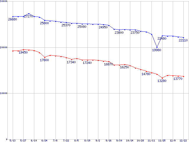 | [↑前グラフ]: | DiamondMax Plus 8 (7200rpm,2MB,UltraATA/133,FDB)の最安値推移 |