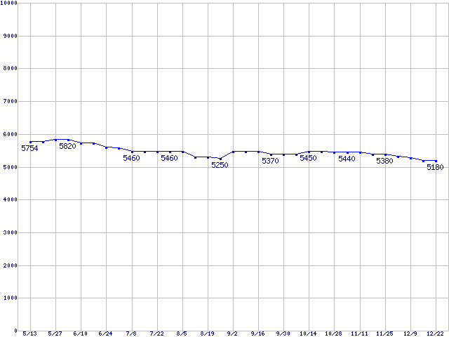 | [↑前グラフ]: | DiamondMax 16 (5400rpm,UltraATA/133,2MB,80GB/Platter,FDB)の最安値推移 |