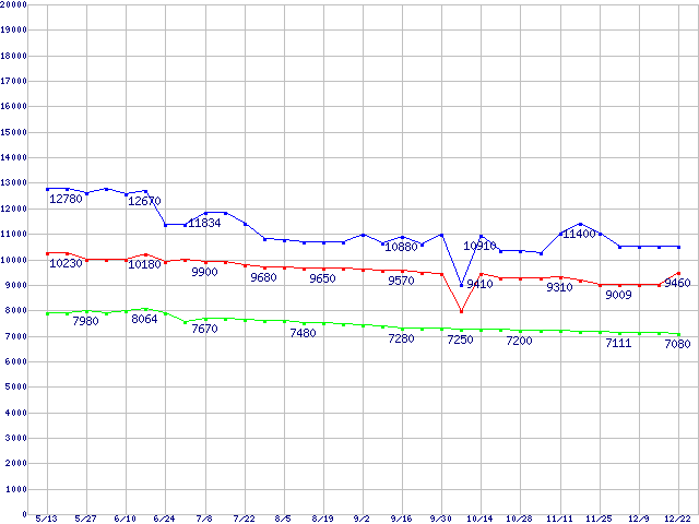 | [↑前グラフ]: | Barracuda 7200.7 SATA (7200rpm,SerialATA/150,8MB,100GB/Platter,FDB)の最安値推移 |