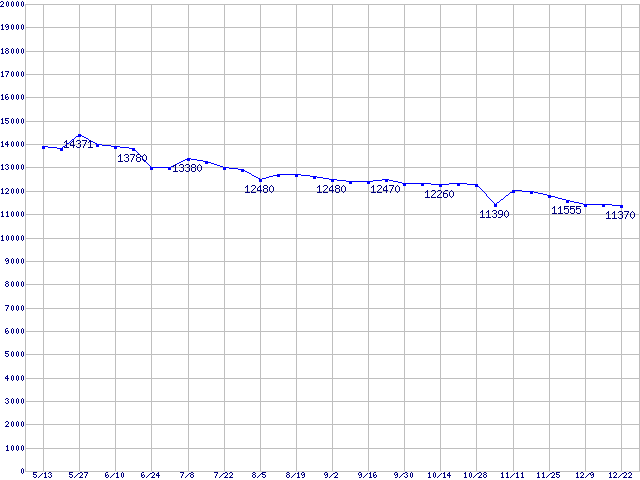 | [↑前グラフ]: | Barracuda 7200.7 (7200rpm,SerialATA/150,8MB,80GB/Platter,FDB)の最安値推移 |