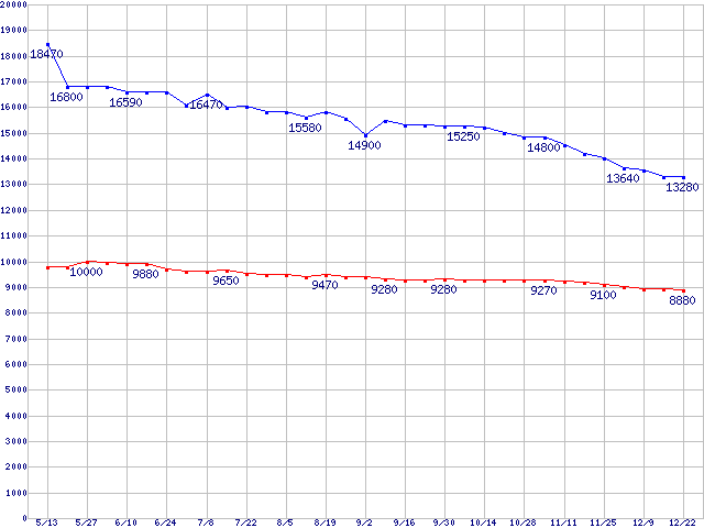 | [↑前グラフ]: | WD Caviar (7200rpm,SerialATA/150,8MB)の最安値推移 |