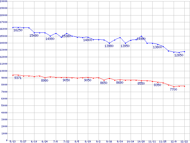 | [↑前グラフ]: | WD Caviar(Special Edition) (7200rpm,UltraATA/100,8MB)の最安値推移 |