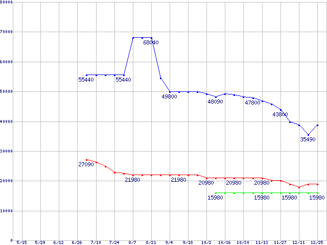 | [↑前グラフ]: | PC2 4300(DDR2 533) DDR2 SDRAM DIMMの最安値推移 |