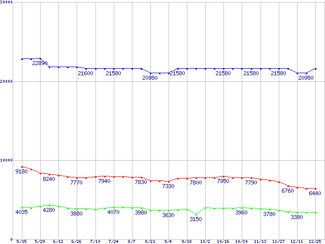 | [↑前グラフ]: | PC2700(DDR333) DDR SDRAM DIMM ECC対応 Registeredタイプの最安値推移 |