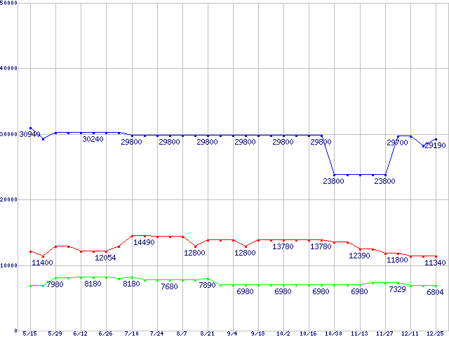 | [↑前グラフ]: | PC2700(DDR333) DDR SDRAM DIMMの最安値推移 |