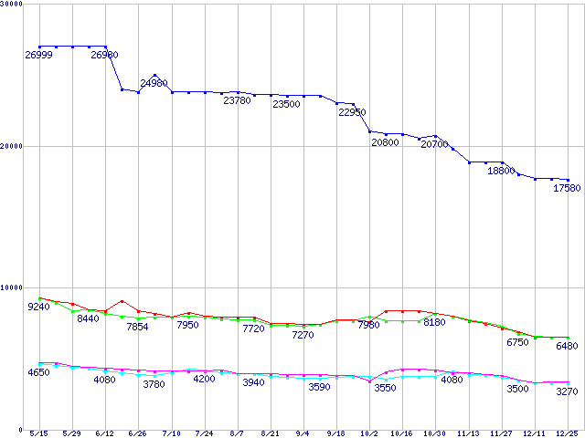 | PC3200(DDR400) DDR SDRAM DIMMの最安値推移 |