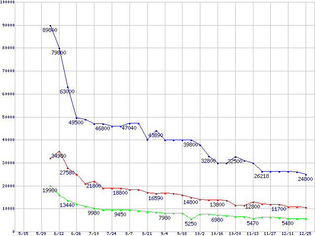 | [↑前グラフ]: | PC2 5300(DDR2 667) DDR2 SDRAM DIMMの最安値推移 |