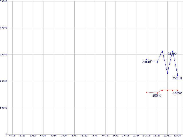 | ※製品名をクリックすると個別のグラフを表示します ※点線部は販売店が確認できなかった、または調査データがないことを示します |