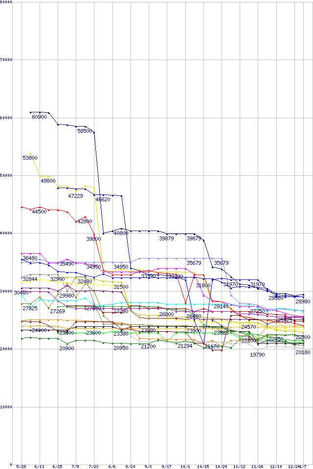CPU主要製品(最安値1万円~2万円未満)の最安値推移