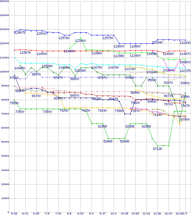 CPU主要製品(最安値3万円~6万円未満)の最安値推移