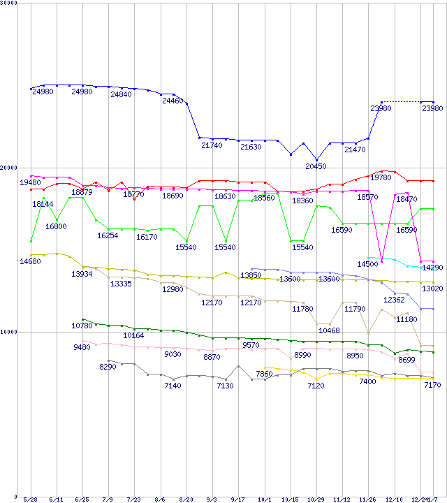 | [↑前グラフ]: | Socket 478・FSB 800MHzの最安値推移 |