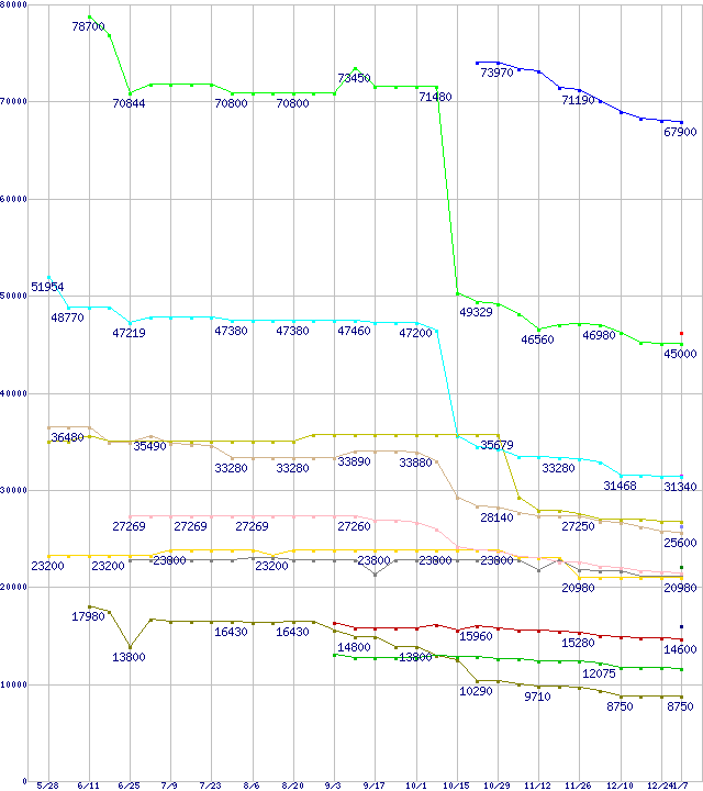 ※点線部は販売店が確認できなかった、または調査データがないことを示します