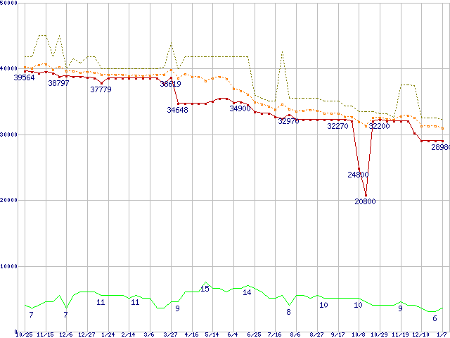 | Xeon 2.80GHz(FSB533) リテールパッケージの価格推移 |