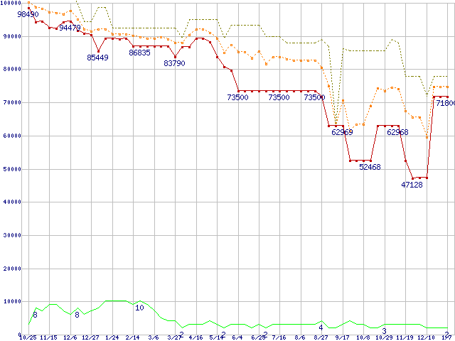 | Athlon 64 FX-51(2.2GHz) リテールパッケージの価格推移 |