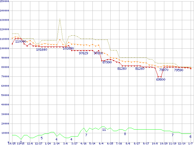 | Xeon 3.2GHz /L3 1MB(FSB533) リテールパッケージの価格推移 |