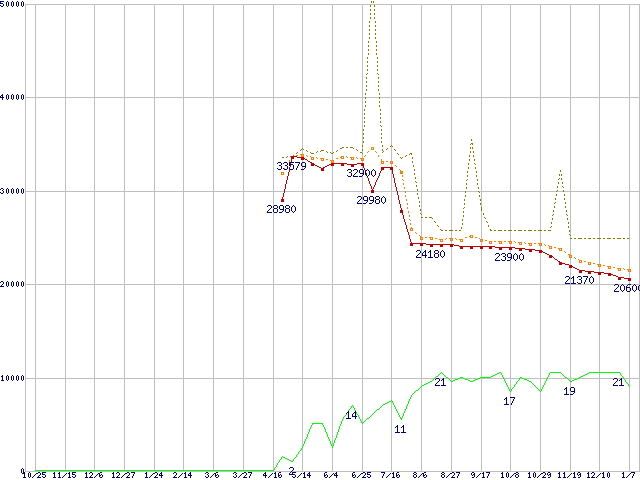 | Athlon 64 3200+(2.2GHz,L2 512KB) リテールパッケージの価格推移 |