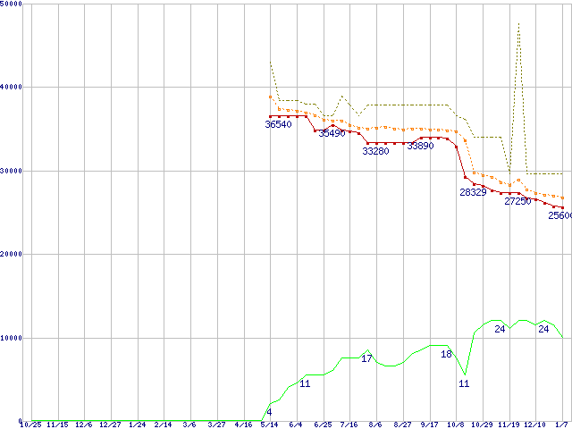 | Pentium M 735 (1.70GHz) リテールパッケージの価格推移 |