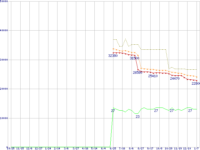 | Pentium 4 540 (3.20GHz) リテールパッケージの価格推移 |