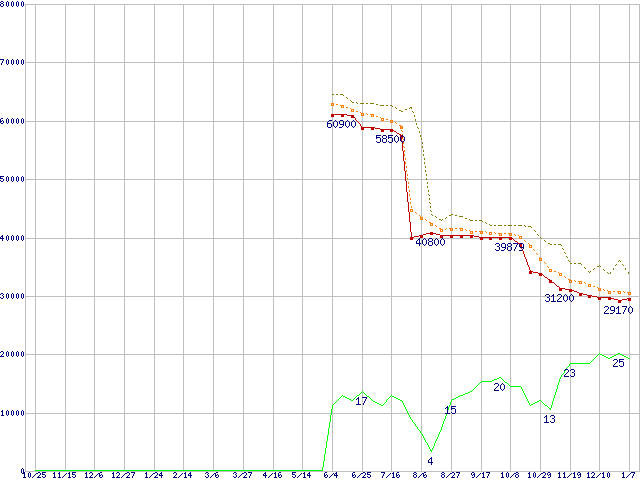| Athlon 64 3500+(2.2GHz,L2 512KB) リテールパッケージの価格推移 |