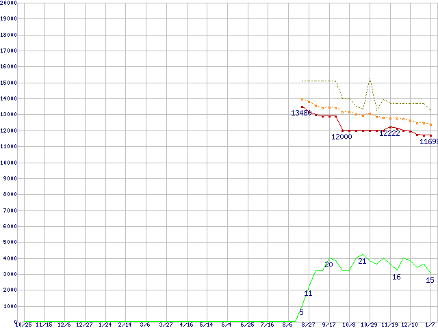 | Sempron 2800+(2GHz,L2 256KB,Socket A) リテールパッケージの価格推移 |