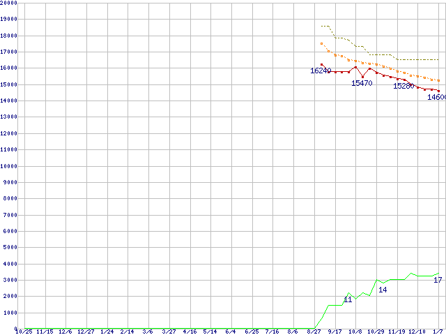 | Celeron M 360 (1.4GHz) リテールパッケージの価格推移 |