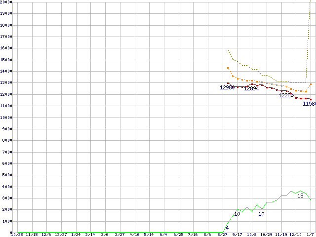 | Celeron M 350 (1.3GHz) リテールパッケージの価格推移 |