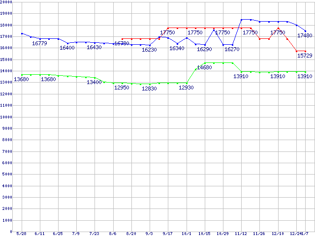 | Socket A (OPGA,FSB 333MHz,L2 512KB,Barton)の最安値推移 |