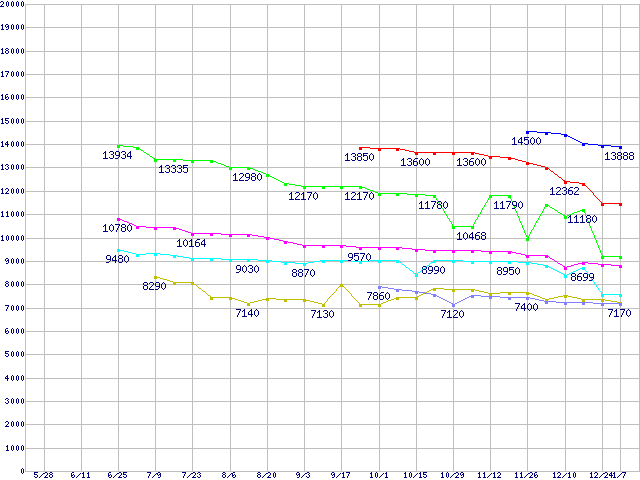 | [↑前グラフ]: | LGA 775 (FC-LGA42,533MHz,L2 256KB,Prescott,NX bit対応)の最安値推移 |