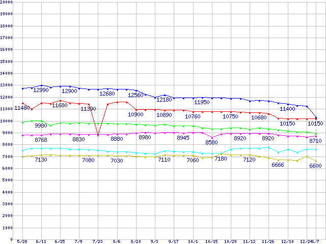 | [↑前グラフ]: | Socket 478 (FC-PGA2,533MHz,L2 256KB,Prescott)の最安値推移 |