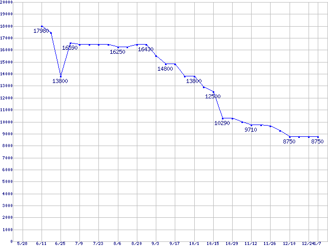 | [↑前グラフ]: | mPGA479M (Micro-FCPGA ,FSB 400MHz,L2 1MB,Dothan)の最安値推移 |