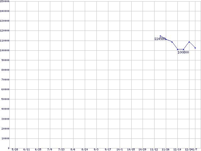 | LGA 775 (FC-LGA4,FSB 1066MHz,L2 512KB,L3 2MB,Hyper-Threading,Gallatin)の最安値推移 |