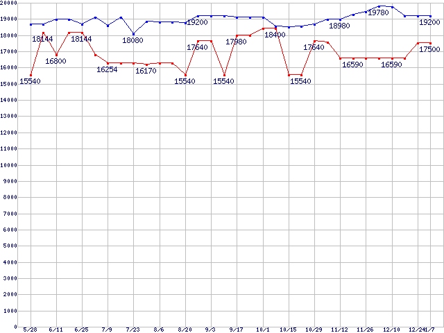 | [↑前グラフ]: | Socket 478 (FC-PGA2,FSB 533MHz,L2 1MB,Prescott)の最安値推移 |