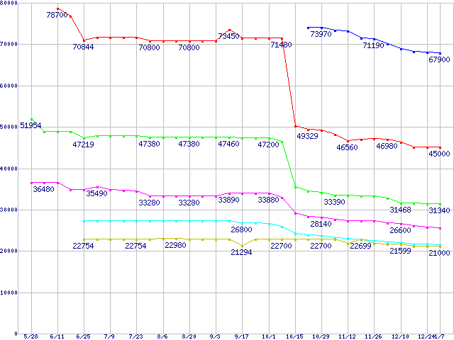 | [↑前グラフ]: | mPGA479M (Micro-FCPGA ,FSB 533MHz,L2 2MB,Dothan)の最安値推移 |
