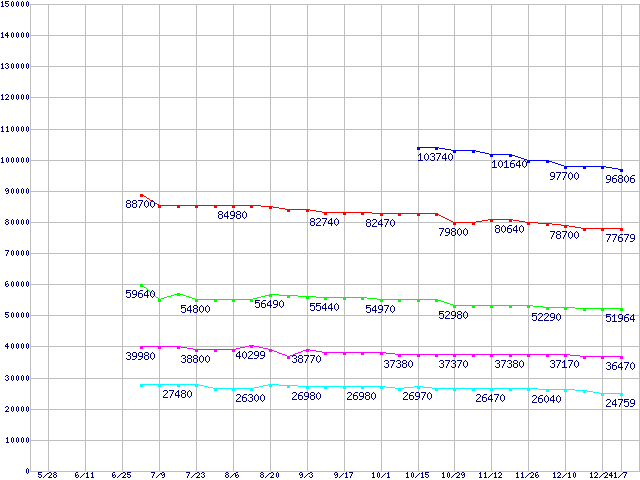 | [↑前グラフ]: | Socket 478 (micro-PGA,FSB 533MHz,L2 512KB,Northwood)の最安値推移 |