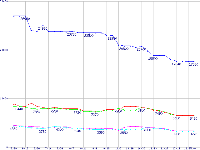 | PC3200(DDR400) DDR SDRAM DIMMの最安値推移 |
